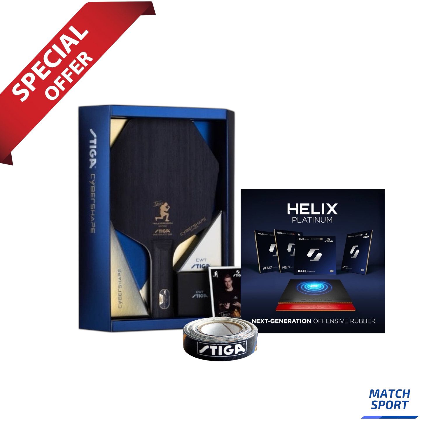 Stiga Cybershape Carbon CWT Truls Edition + Helix Platinum Black and Red (XH or H) + Edge Tape Standard,9MM/5M